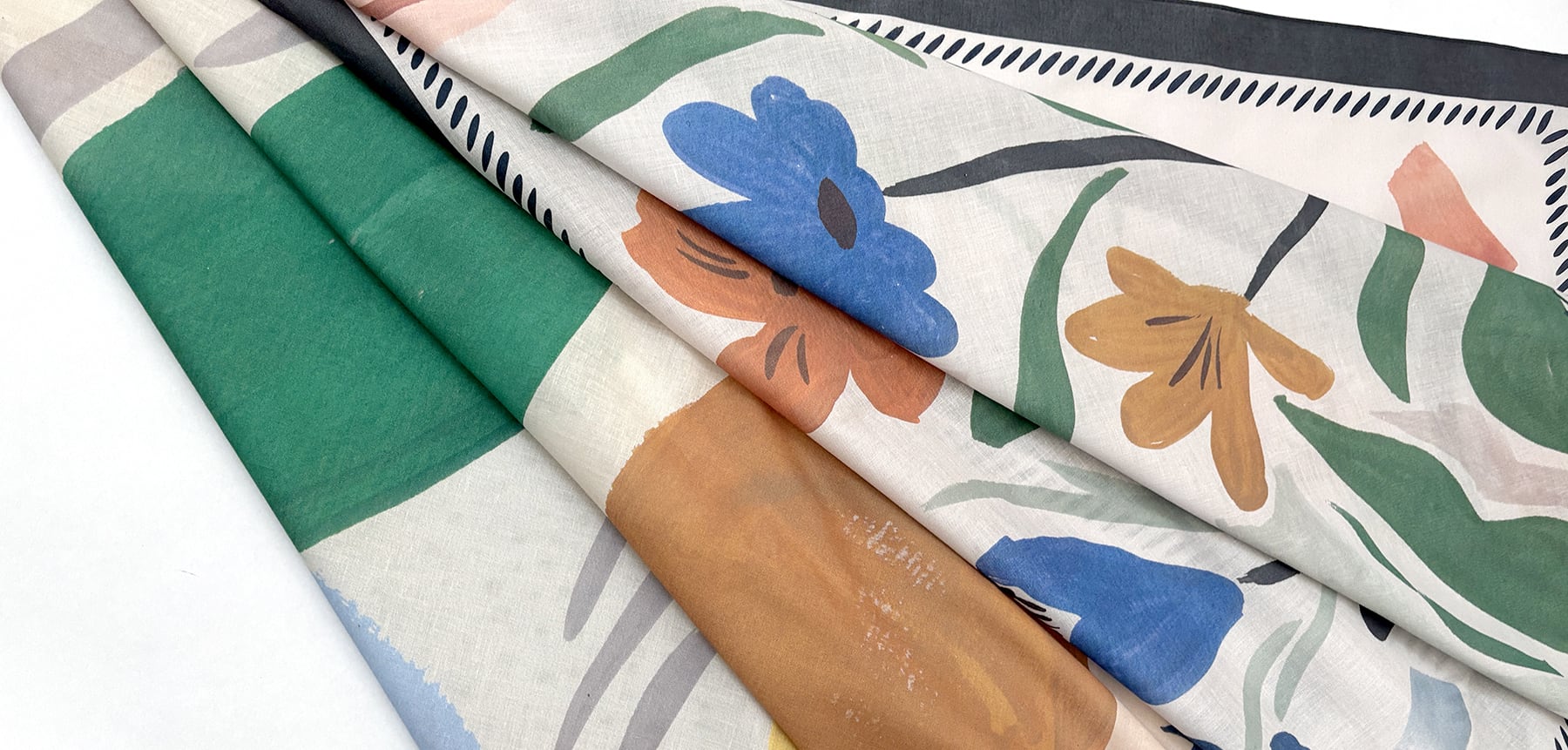 Garden / 2025 STROLLSCAPE series 散歩をテーマに制作しているシリーズ。 庭園で華やかに咲いている花々をモチーフにしたデザインになります。 ¥6000+tax 柔らかな風合いが特徴の大判コットンスカーフ。90cm角のサイズは、様々な使い方ができる便利アイテムです。 首にまくのはもちろん、インテリアとして壁にかけたり、カバーにしたり、またテーブルクロスや風呂敷、敷物としても活躍します。 折り方を変えると異なった配色が楽しめ、毎日の暮らしを豊かに彩ってくれます。 ・サイズ:約90cm×90cm ・コットン100% コンパス:生地の目が粗く、透け感がある平織りの生地で、ガーゼっぽい風合いが特徴です。 Size : 90cm × 90cm Cotton 100%