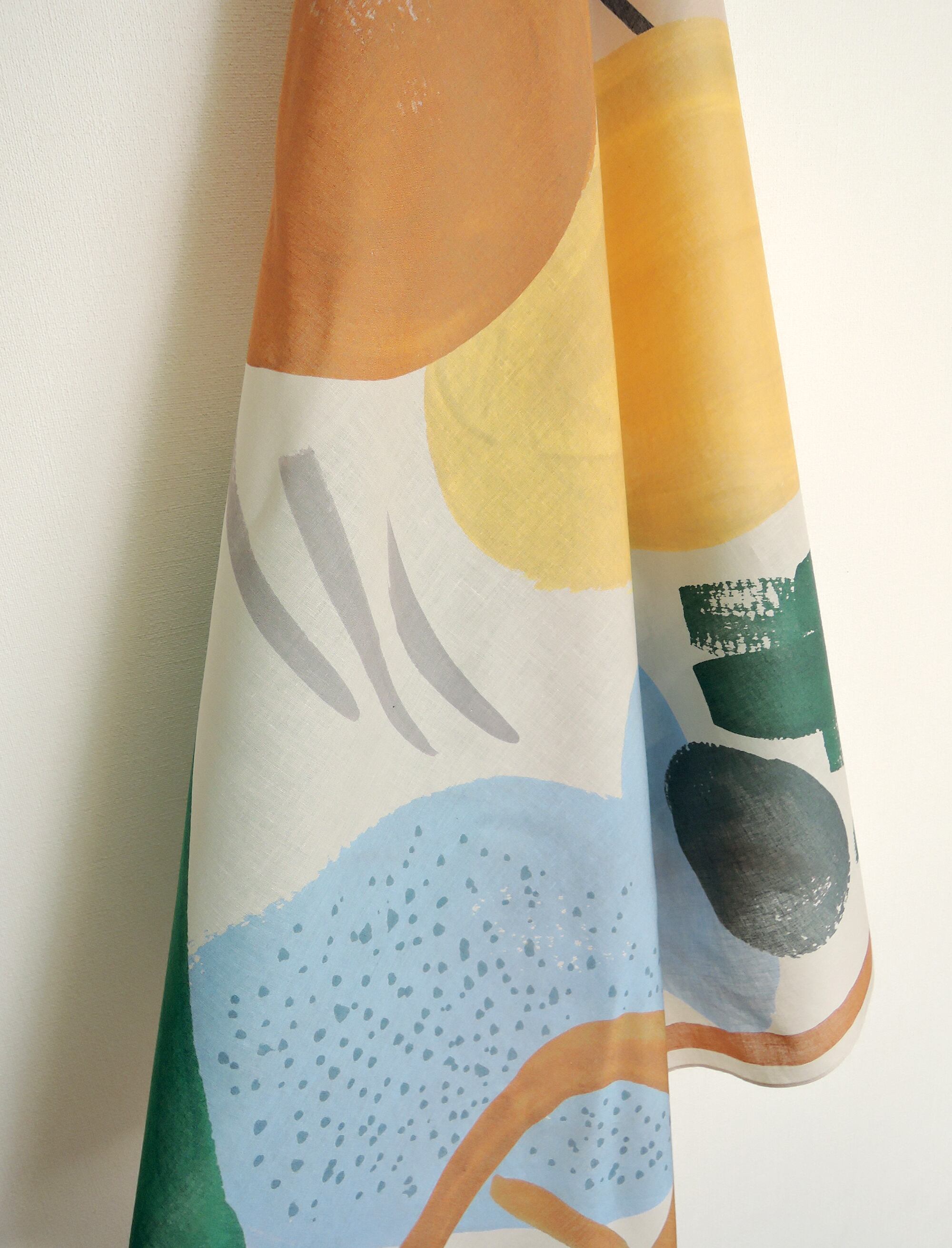 首にまくのはもちろん、インテリアとして壁にかけたり、カバーにしたり、またテーブルクロスや風呂敷、敷物としても活躍します。
